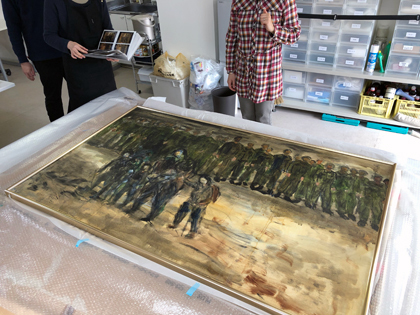 『噫、牡丹江よ!』は、展示終了の翌日には調布にある修復工房に